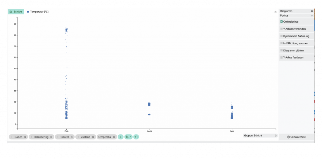 Dazu ziehen Sie den zu gruppierenden Filter (z.B. Schicht) in das Diagramm.