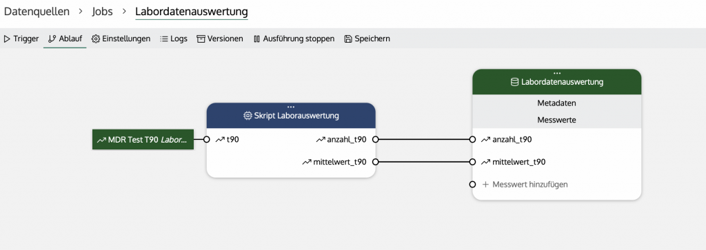 Im Beispiel wird gezählt, wie viele Messungen der Prüfung "T90" in einem Intervall durchgeführt werden und welcher Durchschnitt diese haben.